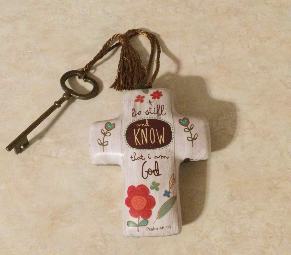 There were lots of walls in those early days of reading the Bible for the first time, and I tried my best to do what my husband recommended. I was surprised at how often it worked. Over time, God seemed to soften those ugly pictures and the dismay in my heart. I’m not sure how He did it, but I was eventually able to take the language of the Bible and its powerful stories and fit it into a growing relationship with a God who is intimately involved with His creation. My favorite verse during that time was on a small ceramic cross given to me in celebration of my baptism: “Be still, and know that I am God.” (Psalm 46:10) I looked at that cross and said those words often. They were my pledge of faith at that time, and I still consider them an essential tool for the kind of character transformation that God desires for his children.